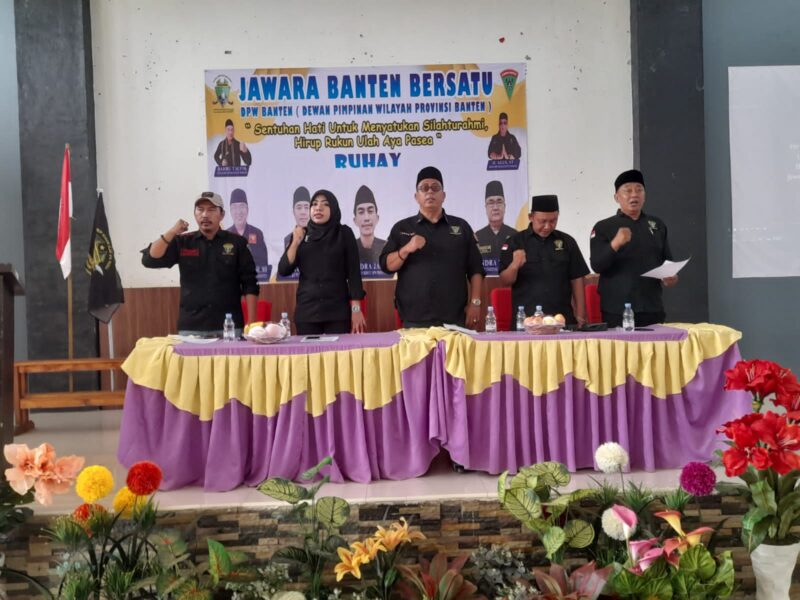Tangerang, Portalmca.com — Jawara Banten Bersatu (JBB) Dewan Pimpinan Wilayah (DPW) Provinsi Banten menggelar penandatanganan bersama tokoh masyarakat (tomas), organisasi masyarakat (ormas), dan Organisasi Kepemudaan (OKP) dalam rangka menjaga keamanan, ketertiban masyarakat (Kamtibmas), dan kearipan lokal, menjelang pesta demokrasi atau Pemilu 2024.