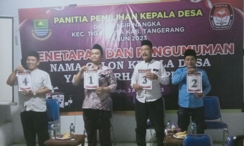Tangerang, Portalmca.com — Panitia Pemilihan Kepala Desa Pasir Nangka umumkan Calon Kepala Desa Pasirnangka Kecamatan Tigaraksa, Kabupaten Tangerang, berlangsung di aula Desa Pasirnangka, Kamis, (3/08/2023).